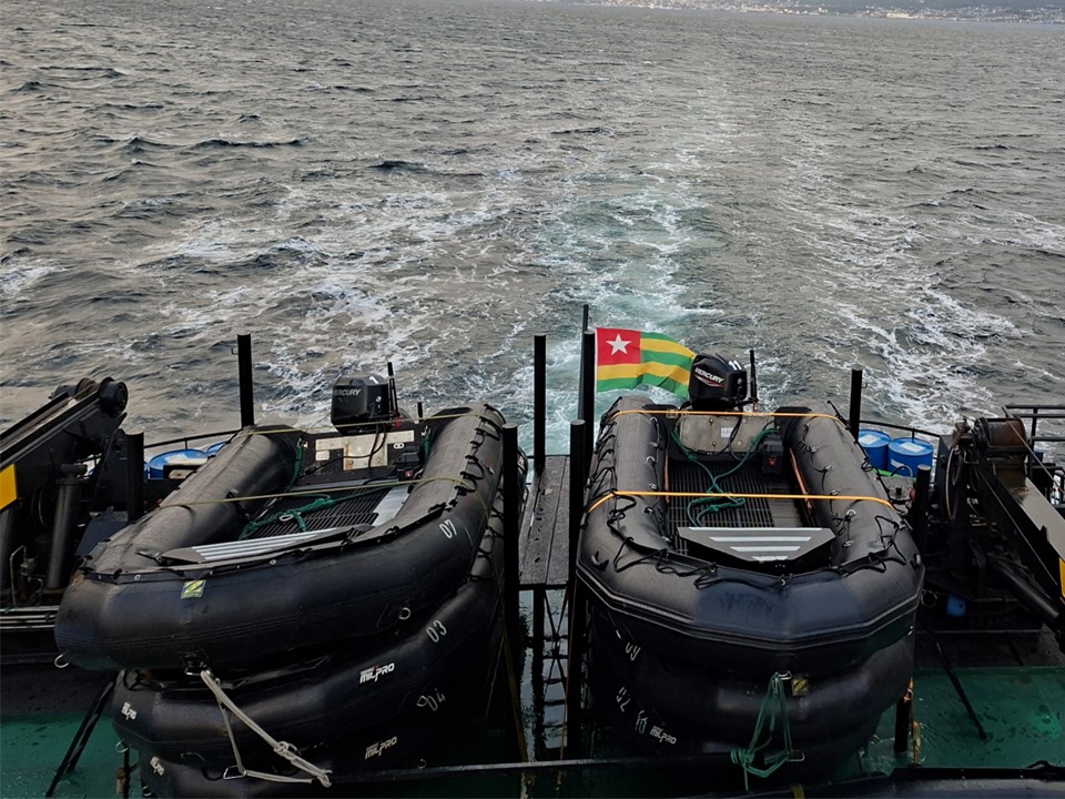 Conall noted that the ship was flying the Togo flag. Later we would see Lome (the capital of Togo) listed on the back of the ship above the license. Apparently this was due to the lower maintenance requirements if it is registered there – admittedly not the answer you want to hear about a ship that will take you through the roughest ocean passage! Luckily we only learned this well after we were past that.