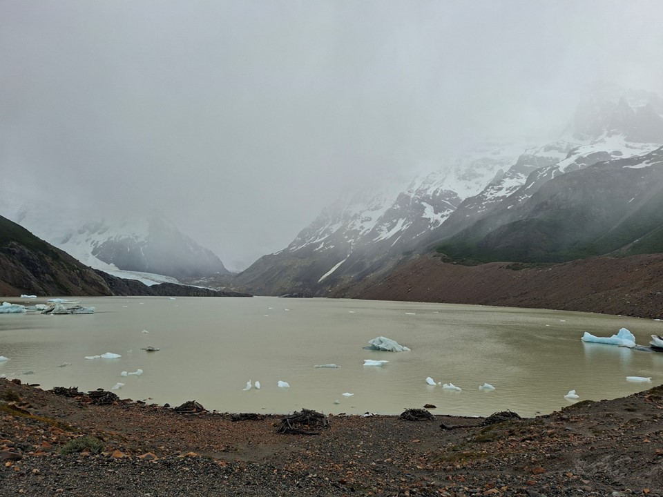 One would normally see Cerro Torre reflected in the lake. The icebergs and glacier at the back of the lake were very beautiful, so it was worth it, even in the absence of one of the most iconic spires on the planet.