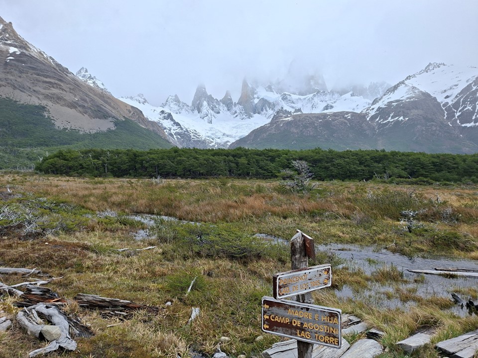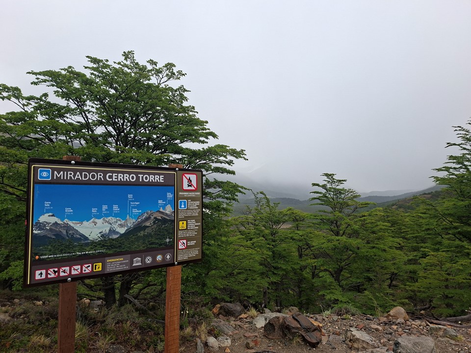 Having just spent 10 days on a ship, I had no clean clothes – so I needed to do laundry and get some snacks before I could head out on a trail. Shortly after handing my clothes to a laundry, clouds had rolled in, and Fitzroy was gone.