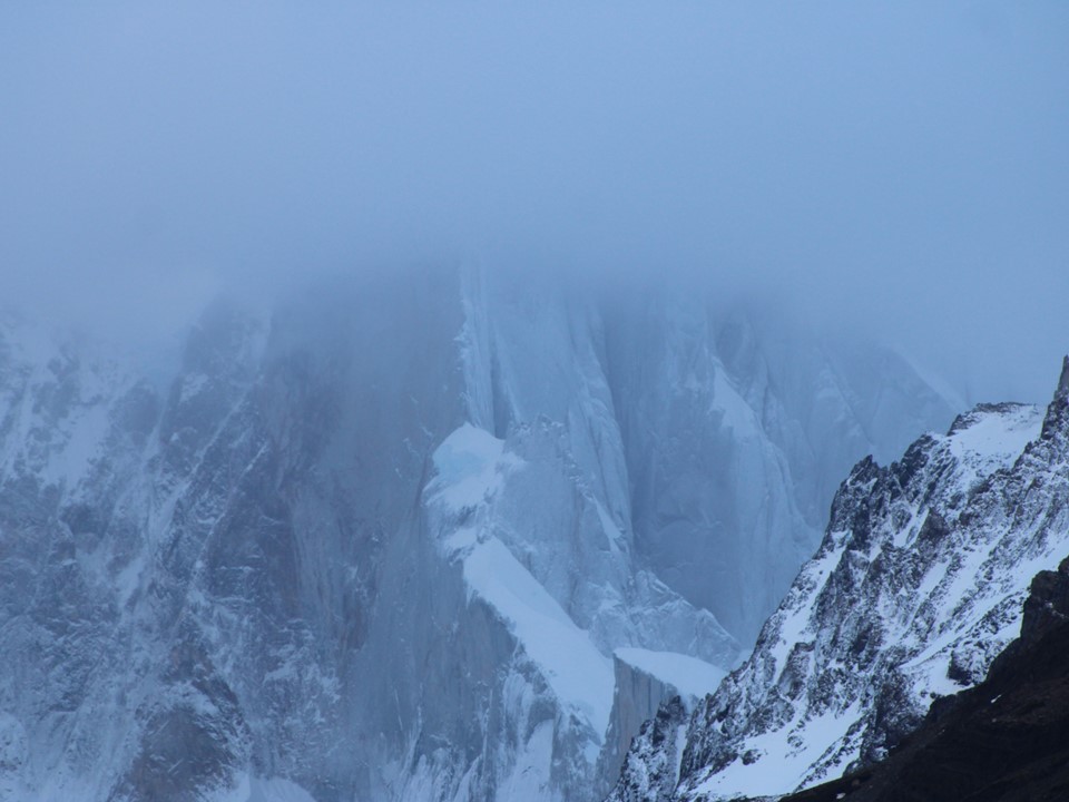 I could see the bottom third of Cerro Torre, and Fitzroy was just sticking its head out of the clouds.